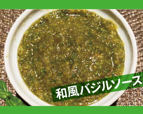 - 粗熱が取れたら、バジルを入れてミキサーにかける。