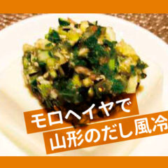 - モロヘイヤはさっと塩茹でして水にとり、水気を絞りみじん切りにする。●のたれを混ぜ合わせる。