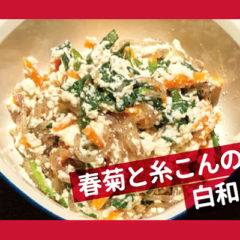 3. 春菊は塩(分量外)を入れた熱湯に1分弱茹でる。水にさらしてしっかり水気を絞り細かく小口切りにする。